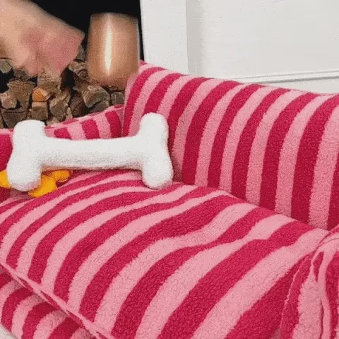 Trendy Striped Faux Lambswool Double Layer Dog & Cat Sofa Bed